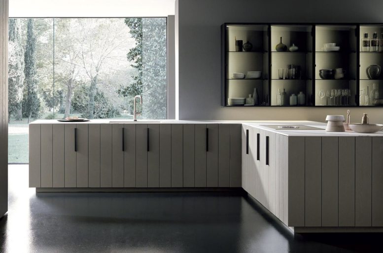 La cucina Float è una proposta per un pubblico raffinato e preciso, predisposto ad abitare in ambienti moderni ma che predilige materiali pregiati e tattili come pietra e legno; ciò significa un perfetto connubio tra tradizione e praticità. La particolarità di questa cucina è lo spessore delle ante mm. 25 e lo stile puro ed elegante con le ante che accolgono il piano di lavoro.