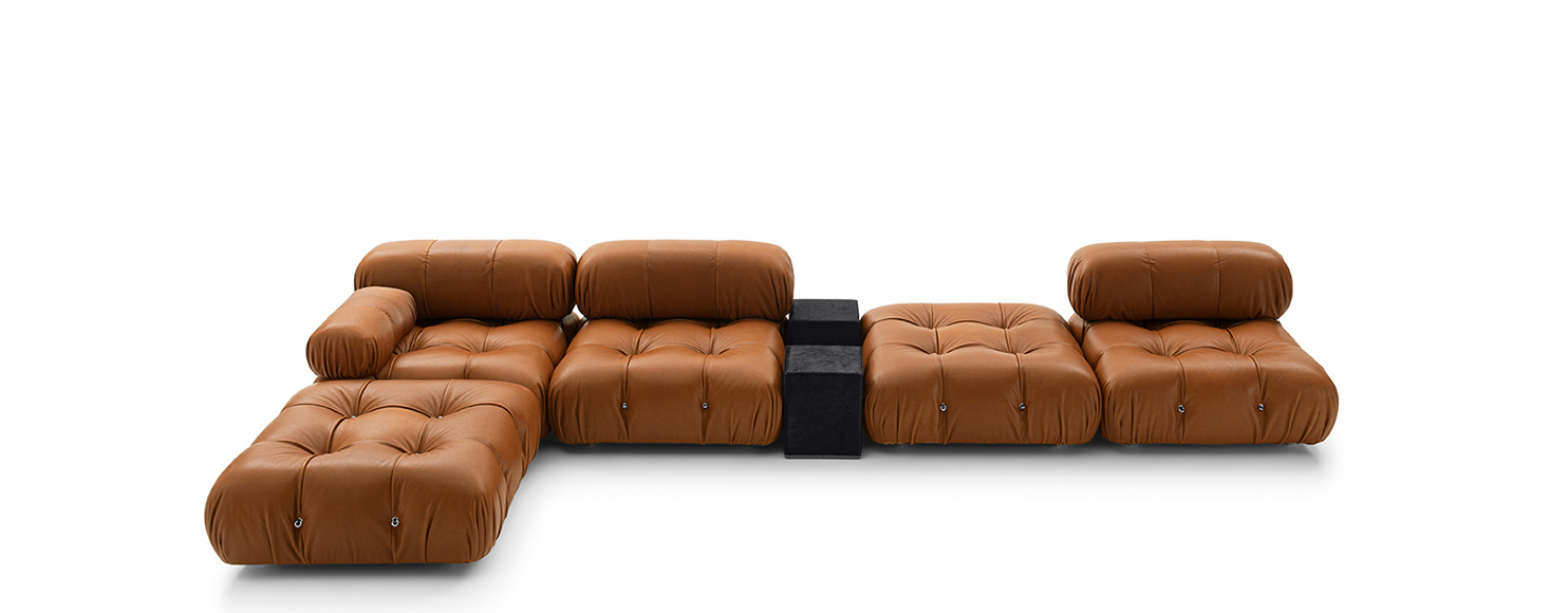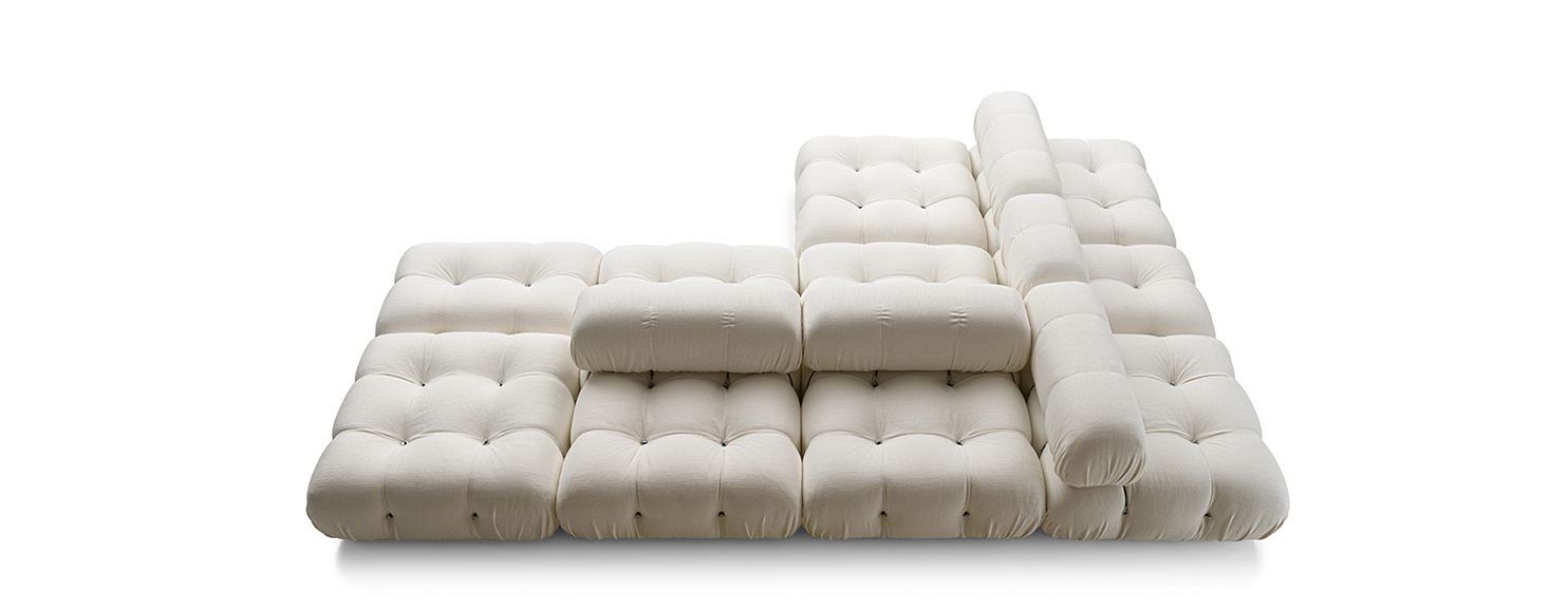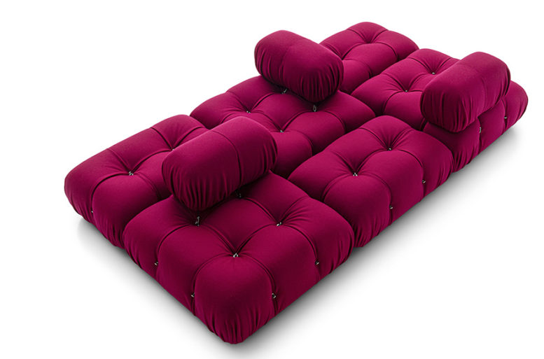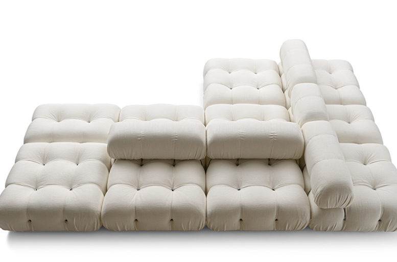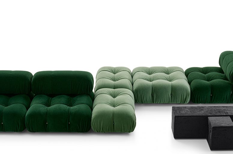 Nella sua riedizione, Camaleonda conserva gli elementi iconici che lo rendono un classico contemporaneo, come il modulo di seduta 90×90, lo schienale, il bracciolo e la generosa imbottitura in poliuretano che forma il caratteristico capitonné. Rimane inalterata ovviamente la sua modularità infinita, simbolo di libertà secondo Bellini, che permette di disegnare e ridisegnare lo spazio a piacimento.