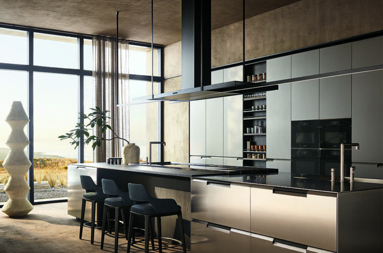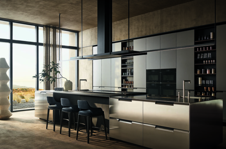 Aesthetics and functionality also find perfect harmony in the kitchen, where the central operating island welcomes the elegant wooden top. The neutral shades are in continuity with the other rooms of the house.