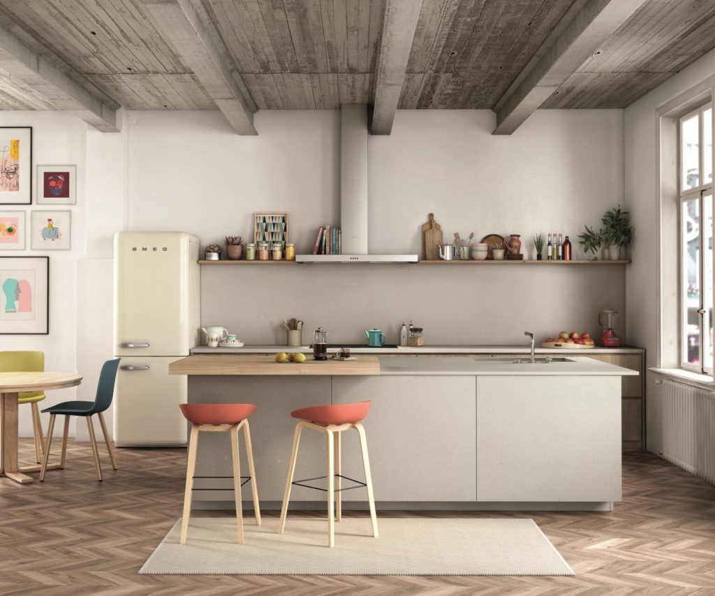 For 2021, Ballarini Interni recommends the quartz surfaces by Silestone by Cosentino, which this year presents a new visual identity in the name of sustainability, thanks to the pioneering and exclusive HybriQ technology. HybriQ technology inaugurates both a new production process and a new material composition, in line with Cosentino’s main objectives of respect for the environment, such as the use of 99% recycled water and 100% renewable energy. From a compositional point of view, HybriQ uses a new hybrid formulation of mineral raw materials that offer a similar or even better performance than quartz and recycled raw materials. This allows to reduce the percentage of crystalline silica so that its quantity is variable between 10% and 50% for some colors. Thanks to this, the surface maintains the technical and mechanical properties and its quality and hygiene certifications intact, combining them with an attractive aesthetic and with the infinite design possibilities guaranteed by the different levels of depth, translucency, and shaded effects. The Loft by Silestone line was the first to be created with this technology, a new series of five colors inspired by the industrial style, dating back to the mid-20th century.