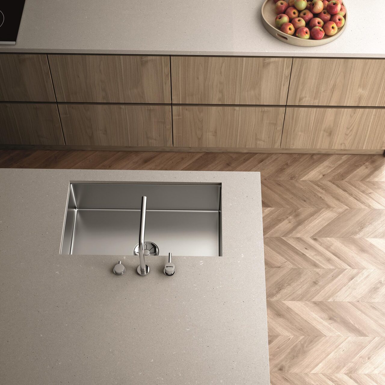 If you want to add an extra touch of nature to your home, Ballarini Interni highlights natural stone tops, materials that simplify everyday life, improve appearance and functionality and are limitless in shape. Concerning this, the collaboration with KTS, Kitchen Top Service, a company with twenty years of experience in the transformation of quartz, ceramic and natural stones and leader in the sector, is important.
