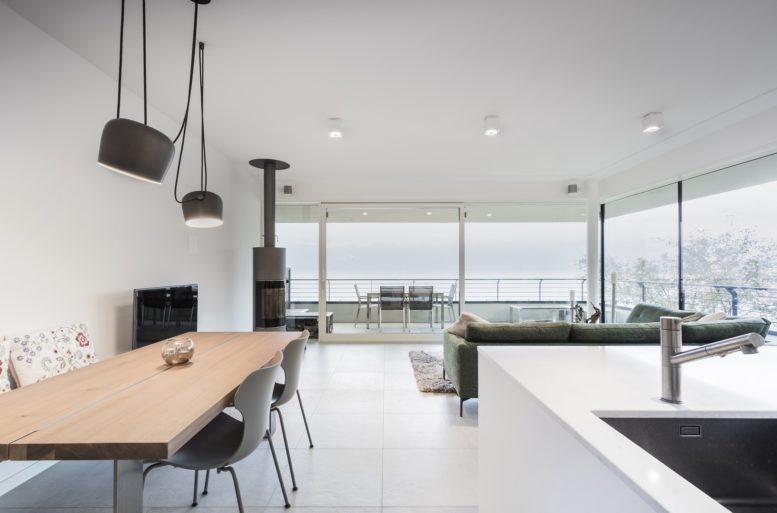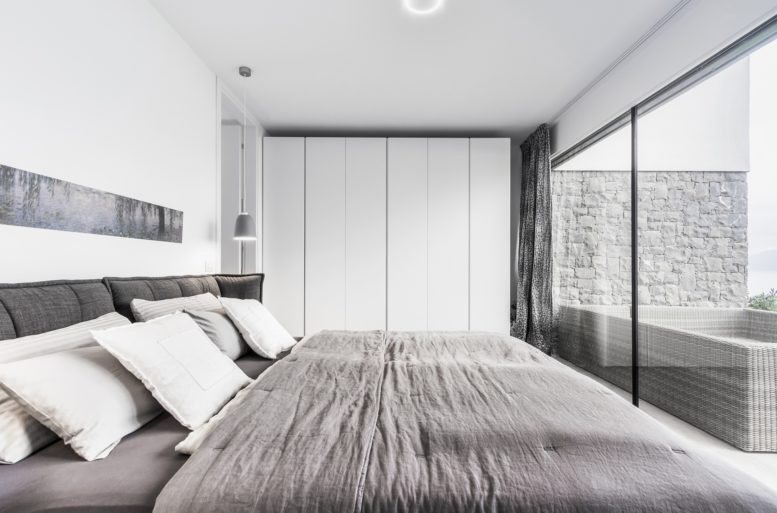 The project by Studio Campanardi, commissioned by Immobiliare Magri, integrates linear and simple forms into the sloping terrain facing the eastern side of Lake Garda, near Torri del Benaco. The central theme of the project is transparency and the seamless integration between the interior living spaces and the natural light from the surrounding environment.
