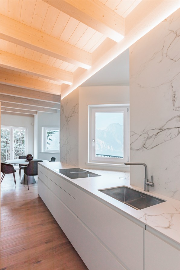 The Casa sulla roccia, designed by Ballarini Interni, is located in the heart of Valpolicella, between Fumane and Cavalo, and represents a perfect balance between contemporary design and the rustic charm of the local tradition. The interiors are carefully crafted in every detail to offer comfort, elegance, and visual harmony.