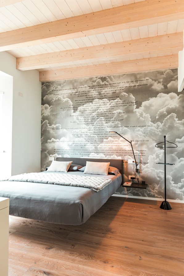 The bedrooms continue the theme of originality and comfort: the Fluttua bed appears to float in the room, while a customized wallpaper inspired by Alice in Wonderland transforms the space into a poetic and engaging environment. The Modulnova bathroom, with its clean lines and high-quality materials, completes the living area with a touch of discreet elegance.