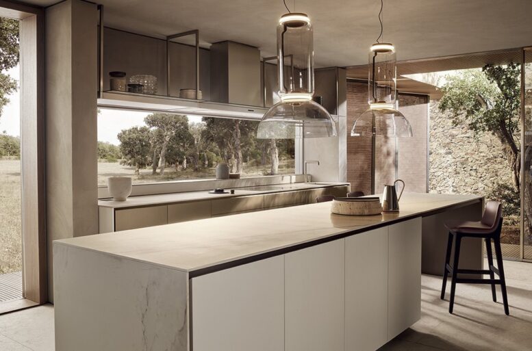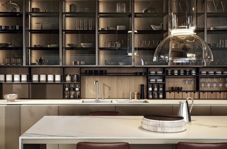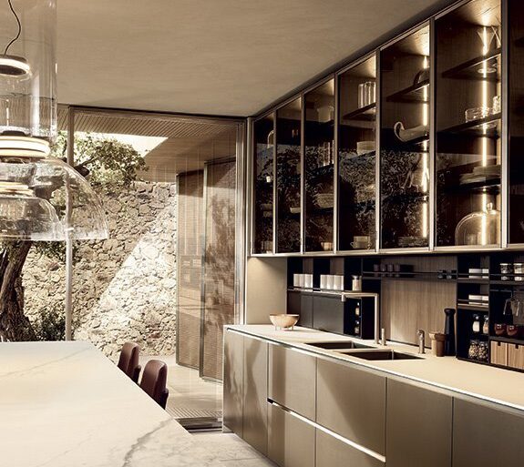 A restyling of the iconic and consolidated Alea model, Alea Pro is characterized by the most marked expressiveness. A kitchen system that combines a very high operational capacity with a contemporary look, to be customized with a very wide range of materials and finishes
