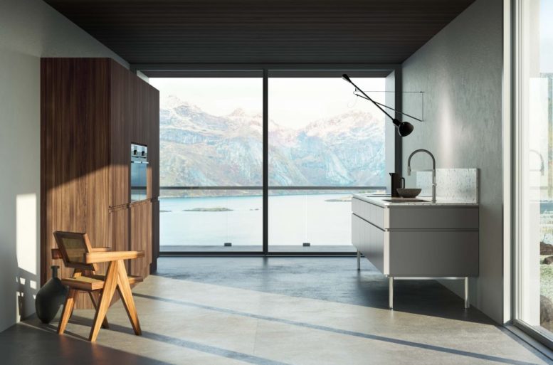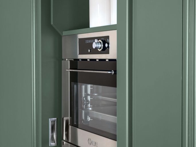 With Archetipo, kitchen spaces expand and go beyond the simple concept of functionality to take on aesthetic value. Equipped high Floral wall paneling in lacquered wood creates an elegant and versatile space, classic spirit meets the sleek shapes of the central island in a kitchen of unique taste.