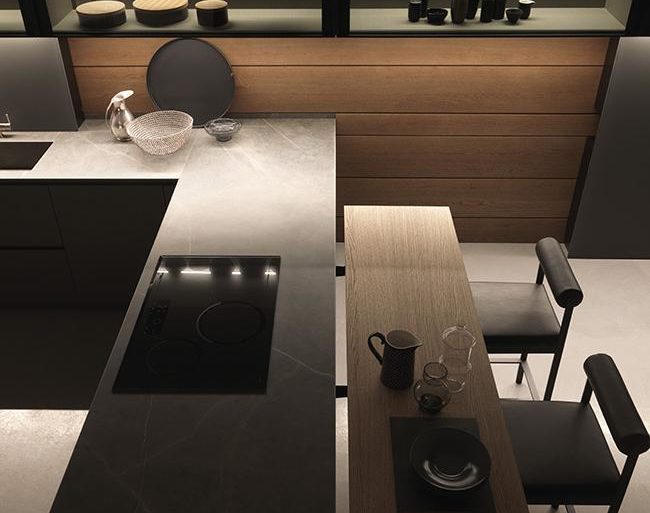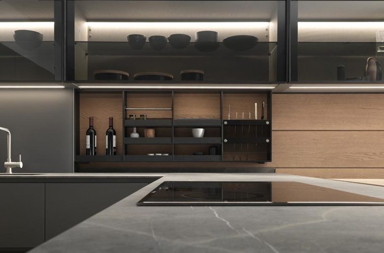 When planning space the kitchen project bears in mind ergonomics and interaction of the different work areas, featuring elegant finishes and colour schemes.