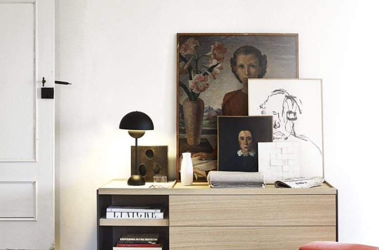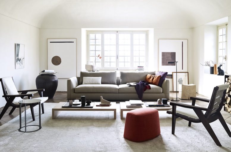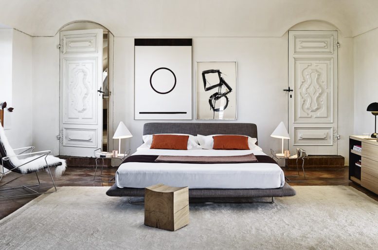 Dominano il legno e i tessuti, scelti nei colori nocciola chiaro, bianco e grigio. L’arredo e i mobili B&B Italia, assieme alle pareti chiare, riflettono con morbidezza la luce esterna e crea un ambiente calmo e accogliente. Le lampade e i complementi d’arredo sono gli unici elementi frizzanti, che danno tocchi inaspettati con geometrie semplici, ma inusuali per un’abitazione storica.