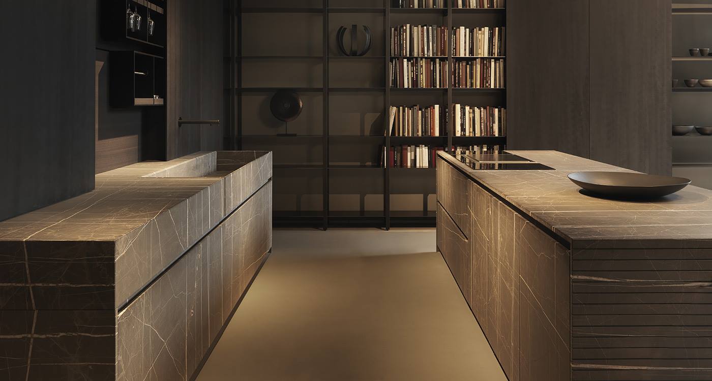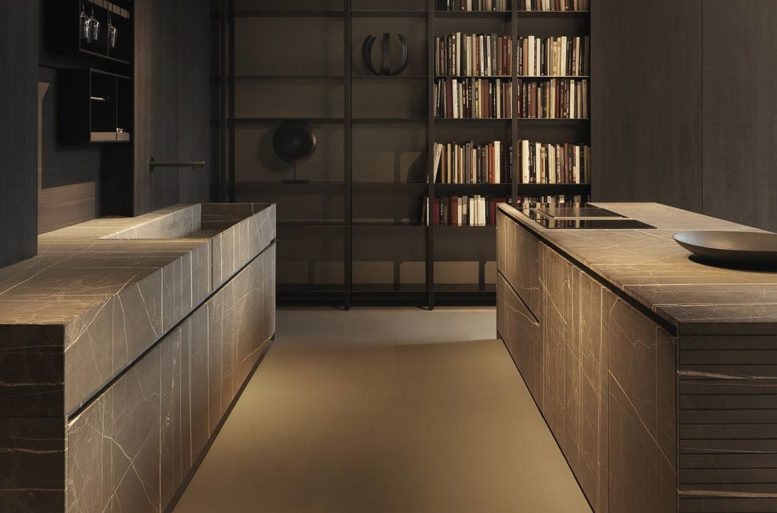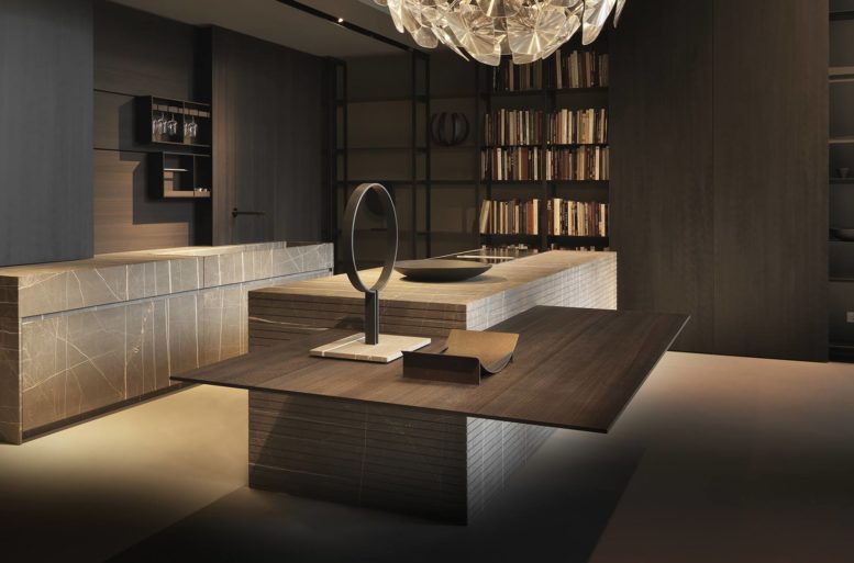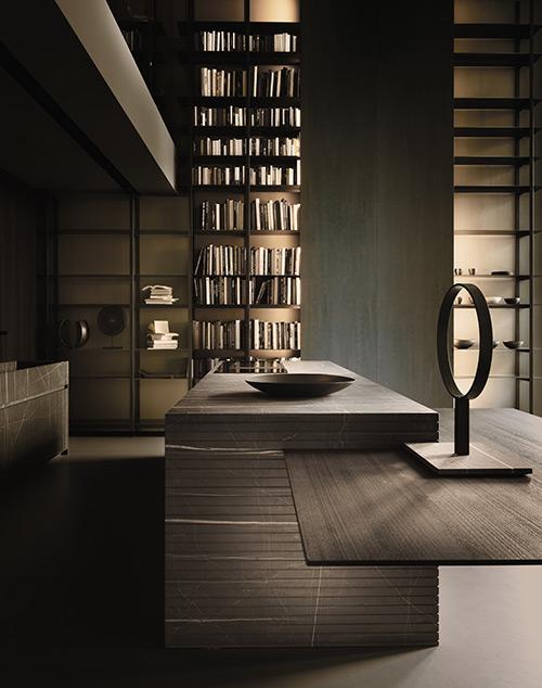 Il design è autentica geometria, un incastro di volumi solidi. La cucina è un oggetto modellato che si integra con le altri parti della casa. La pulizia delle superfici esaltata dalla linearità della forma è adatta per uno spazio funzionale e deciso.