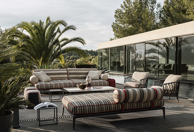 Nuance vibranti ispirate alla natura, geometrie e fantasie sofisticate, una sapiente mescolanza di riferimenti etnici e rigore architettonico, soluzioni progettuali che consentono una sempre maggiore adattabilità: queste le caratteristiche fondanti delle novità outdoor 2019 alle quali si affiancano prodotti già parte della collezione B&B Italia, ora aggiornati nelle finiture, per una proposta outdoor in equilibrio tra contemporaneità, innovazione e memoria.