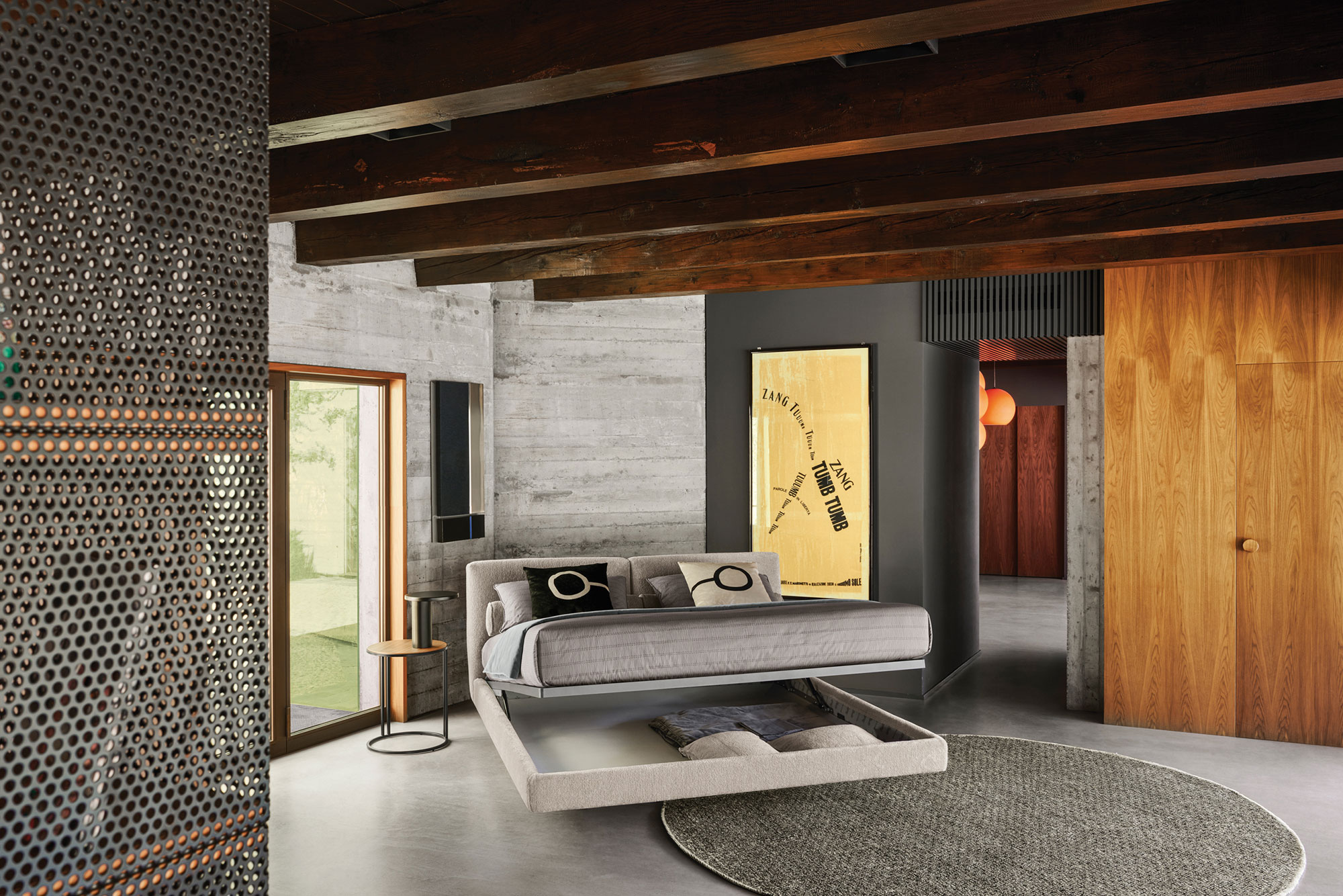 Firmato da Matteo Ragni, Book abbina poesia e praticità: il giroletto, disponibile anche in versione contenitore, offre uno spazio discreto per organizzare, mentre i piedi rettangolari, collocati ai lati, alleggeriscono visivamente il letto e ne sottolineano la purezza delle linee.