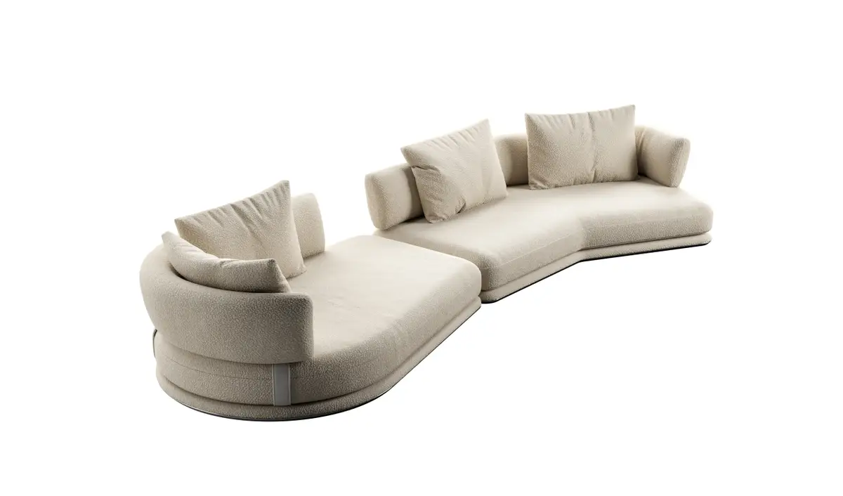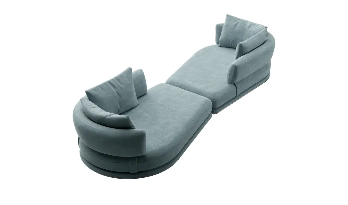 Il sistema si compone di cinque moduli distinti: un rettangolare, due dormeuse curve, una chaise longue e un modulo angolare. Grazie alla loro versatilità, gli elementi possono essere combinati liberamente per creare innumerevoli configurazioni, adattandosi con naturalezza sia a spazi ampi che a ambienti più raccolti.