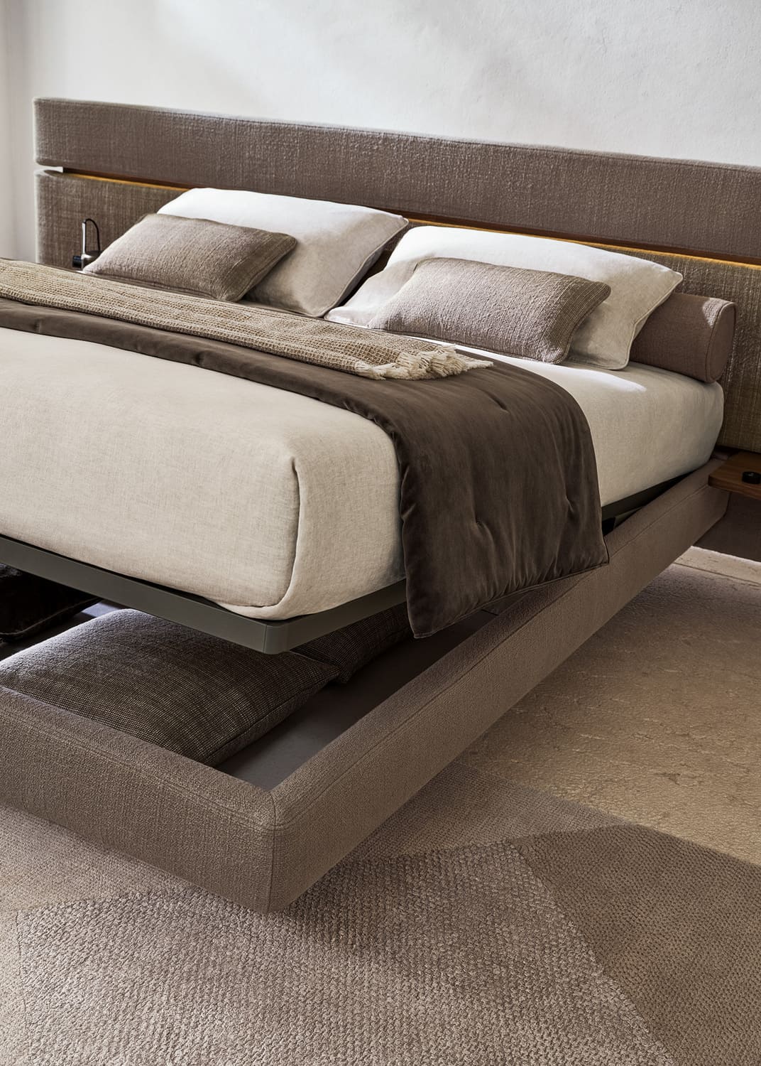 Infinito nasce da questa visione. È un letto progettato per costruire relazioni semantiche su più livelli: da un lato, il dialogo con i materiali e la cura artigianale che definisce da sempre il sapere manifatturiero di Twils. Dall’altro, le persone che lo abitano, i loro gesti, gli spazi privati che prendono forma attorno a un oggetto d’uso dal forte potere evocativo.