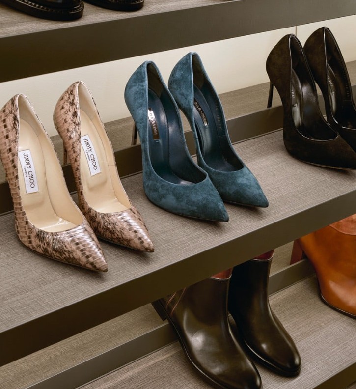 Il sistema a cremagliera è disponibile in due eleganti finiture metalliche: ardesia e champagne brillante, per un risultato armonioso e di grande impatto visivo.