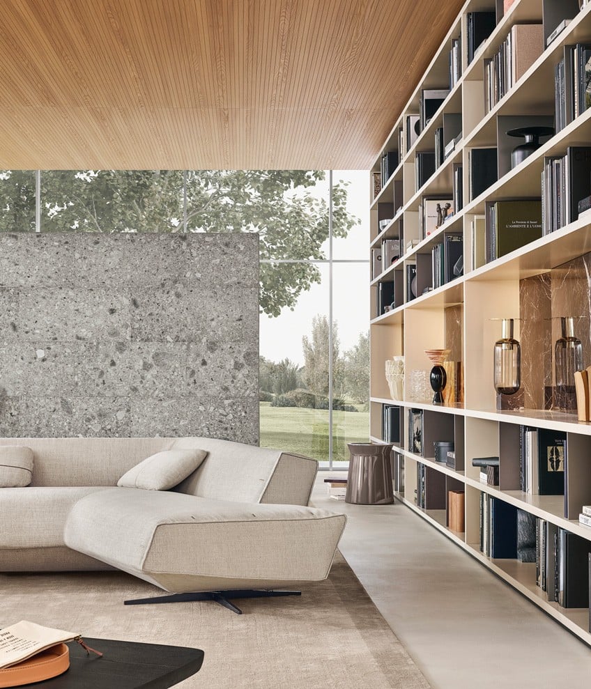 Wall System di Poliform è un sistema di arredo storico, noto per la sua straordinaria versatilità e la capacità di adattarsi ad ogni esigenza funzionale ed estetica del living. Il programma ruota attorno alla libreria, concepita come il cuore pulsante della zona giorno, e si evolve costantemente per offrire soluzioni sempre nuove. La struttura è basata su una libreria a spalla portante, alleggerita da griglie sottili che creano una sensazione di leggerezza e modernità.