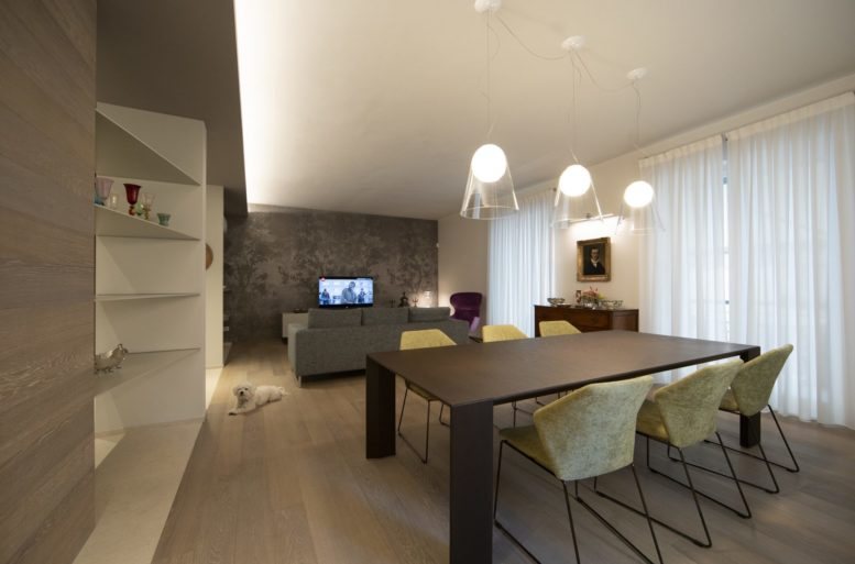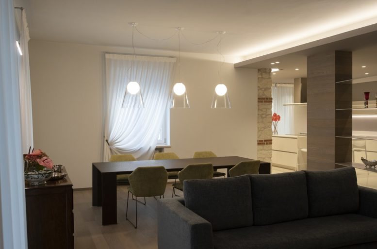 Il progetto curato dall’ architetto Nicola Cacciatori dello studio BC+V architetti, riguarda più che una ristrutturazione, un restyling in chiave contemporanea di una unità residenziale signorile con già dei connotati planimetrici caratterizzanti molto ben studiati e significativi.
