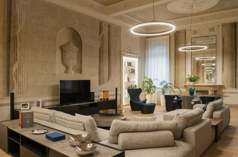 A complessità di questa valorizzazione edilizia consiste proprio nella sua location, un antico e prestigioso palazzo della Verona storica dove la sfida più grande è stata forse quella di creare un perfetto bilanciamento tra modernità e storia, storia così fortemente radicata tra le mura di questa dimora, tanto da guidare le sapienti mani degli interior designer di Ballarini Interni, senza mai dimenticare i contemporanei dettami dell’abitare. Una sfida certamente impegnativa ma vinta con l’attenzione per l’identità architettonica dell’immobile associata al desiderio di creare continuità e coerenza con il passato, senza creare interferenze stilistiche.