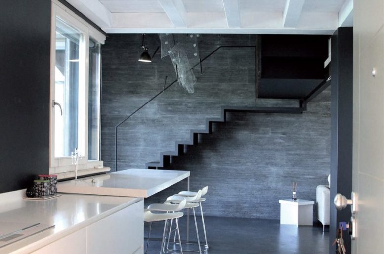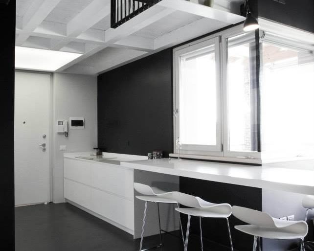 cucina e living, mentre nel soppalco è stata organizzata la zona notte. Less is more, togliere corrisponde nella maggior parte dei casi a dare qualità: perciò da qui la scelta di aprire tutti gli spazi per vivere di una visione a 360 gradi con l’esterno.