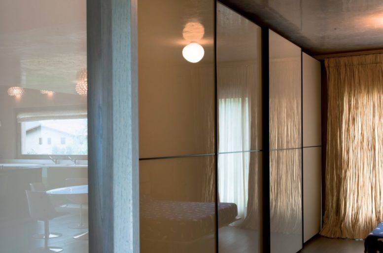 Vi trovano spazio l’ampio divano Ray di B&B cucito con punto cavallo tono su tono, raffrontato dal contenitore Pab sempre di B&B, con vani di alloggiamento delle varie strumentazioni per la tv. che comunque non rinunciano alla massima qualità estetica. La bella credenza in frassino cotto di Maxalto, con l’alternanza di listelli vetro/legno, cattura la luce con effetti di particolare suggestione, già pezzo museale oltre la sua connotazione di servizio. Ogni zona esprime al meglio le sue funzioni attraverso la scelta mirata di elementi d’arredo che agevolano e accompagnano lo svolgimento della vita di una casa assolutamente unica.
