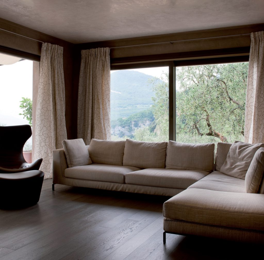 Definire mozzafiato la vista del lago di Garda da Tremosine, sulla costa bresciana, è assolutamente riduttivo. E quella che viene inquadrata dalle vetrate della villa qui presentata è perdipiù unica, ed entra all’interno aggiungendo bellezza a spazi ricchi anche di grande personalità. Ballarini Interni ha saputo seguire ed esaltare il grande gusto della padrona di casa che ha voluto colori inusuali alle pareti dai tagli decisi, accostamenti marmo/parquet nei pavimenti, linee essenziali e forti per la scala interna, per definire uno spazio familiare appena concluso nelle sue scelte di base, ma pronto a ricevere quei tocchi personali che riescono a creare l’unicità di questi ambienti.