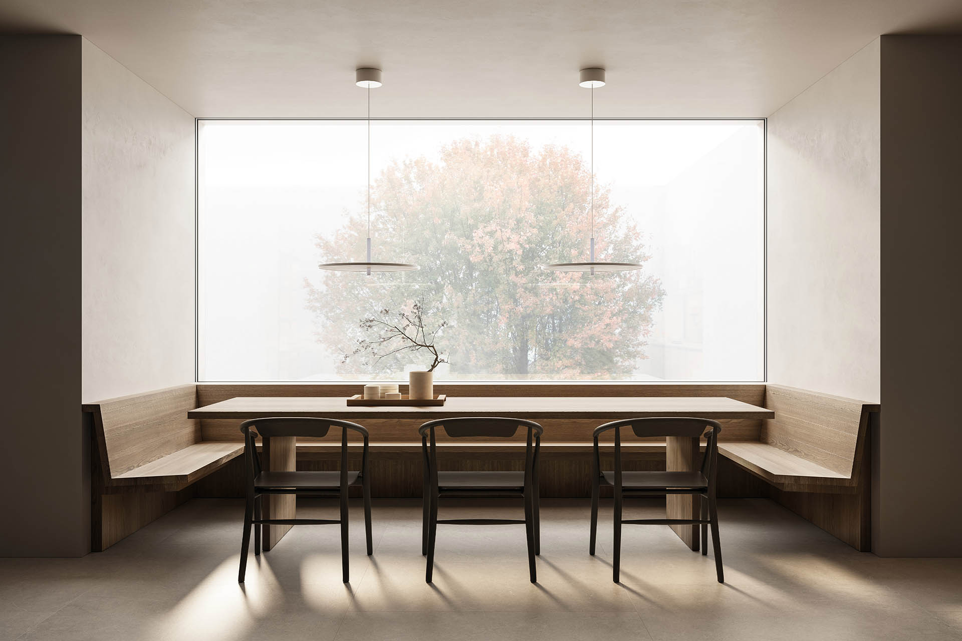 In continuità con l’estetica lineare di Thea, il tavolo da pranzo e la seduta Panca Arclinea, qui nella versione “in nicchia”, creano una relazione armonica tra l’ambiente cucina e la zona dining, e instaurano un dialogo tra le postazioni operative e gli arredi dedicati alla convivialità. Il connubio tra stile e funzionalità rende questo ambiente un luogo di lavoro perfettamente attrezzato, ma anche spazio godibile, caldo e luminoso.