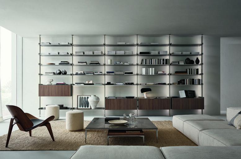Nella versione libreria Zenit amplia le proprie potenzialità progettuali con l’introduzione di un inedito montante retroilluminato e dei nuovi contenitori sospesi che, come tutti gli elementi compositivi di Zenit, consentono un libero posizionamento.